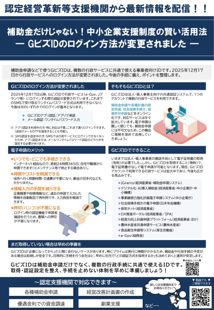補助金だけじゃない!中小企業支援制度の賢い活用法 ― GビズIDのログイン方法が変更されました ―