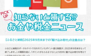 今回のテーマは、「<ふるさと納税> 2025年9月末までの「駆け込み寄付」の注意点は?」です。 2025年9月末にポイント還元制度が終了 ふるさと納税のポータルサイトで行われていた ポイント還元制度が、2025年9月末を […]
